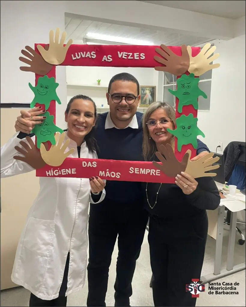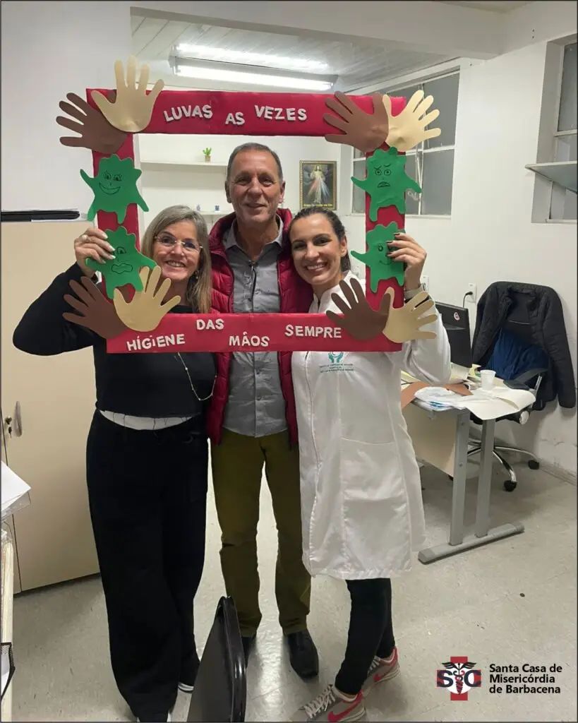 O Serviço de Controle de Infecção Hospitalar – SCIH, em parceria com o Núcleo de Segurança do Paciente – NSP, preparou uma dinâmica especial para os profissionais da Santa Casa de Misericórdia de Barbacena para reforçar a importância dessa prática na segurança do paciente.